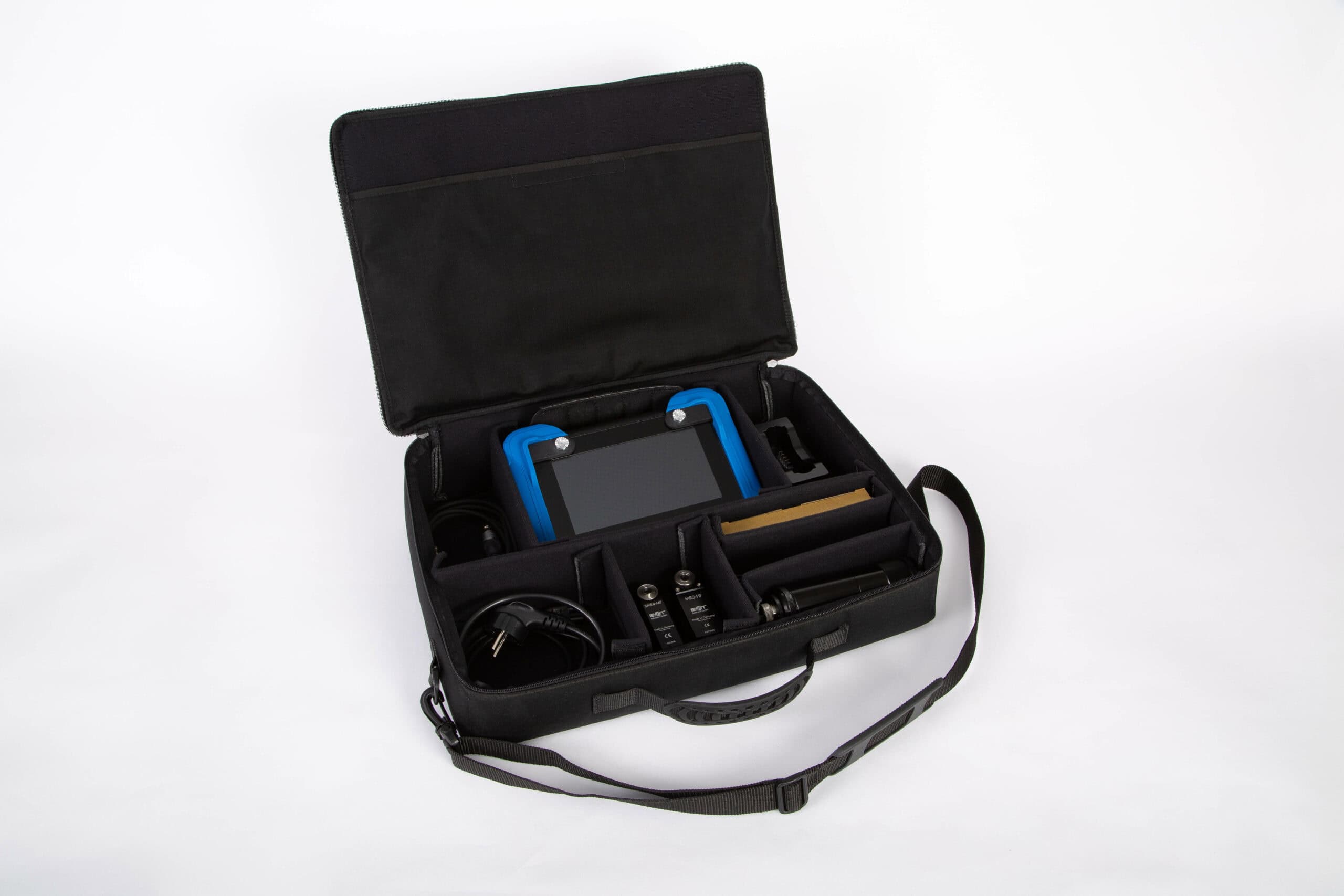 Avec la version basique, les clients reçoivent un appareil de test intuitif et à la pointe de la technologie. Des accessoires, tels qu'une valise Pelicase, un sac de transport, un chargeur de table, une pochette de ceinture pour une batterie supplémentaire (pratique sur le terrain) et une pochette ventrale, complètent la livraison.